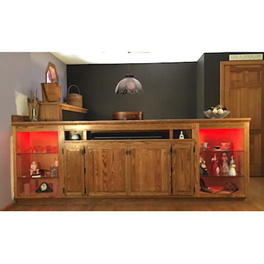 Watch this cabinet in action as a TV emerges silently from within the custom-built solid oak cabinet.